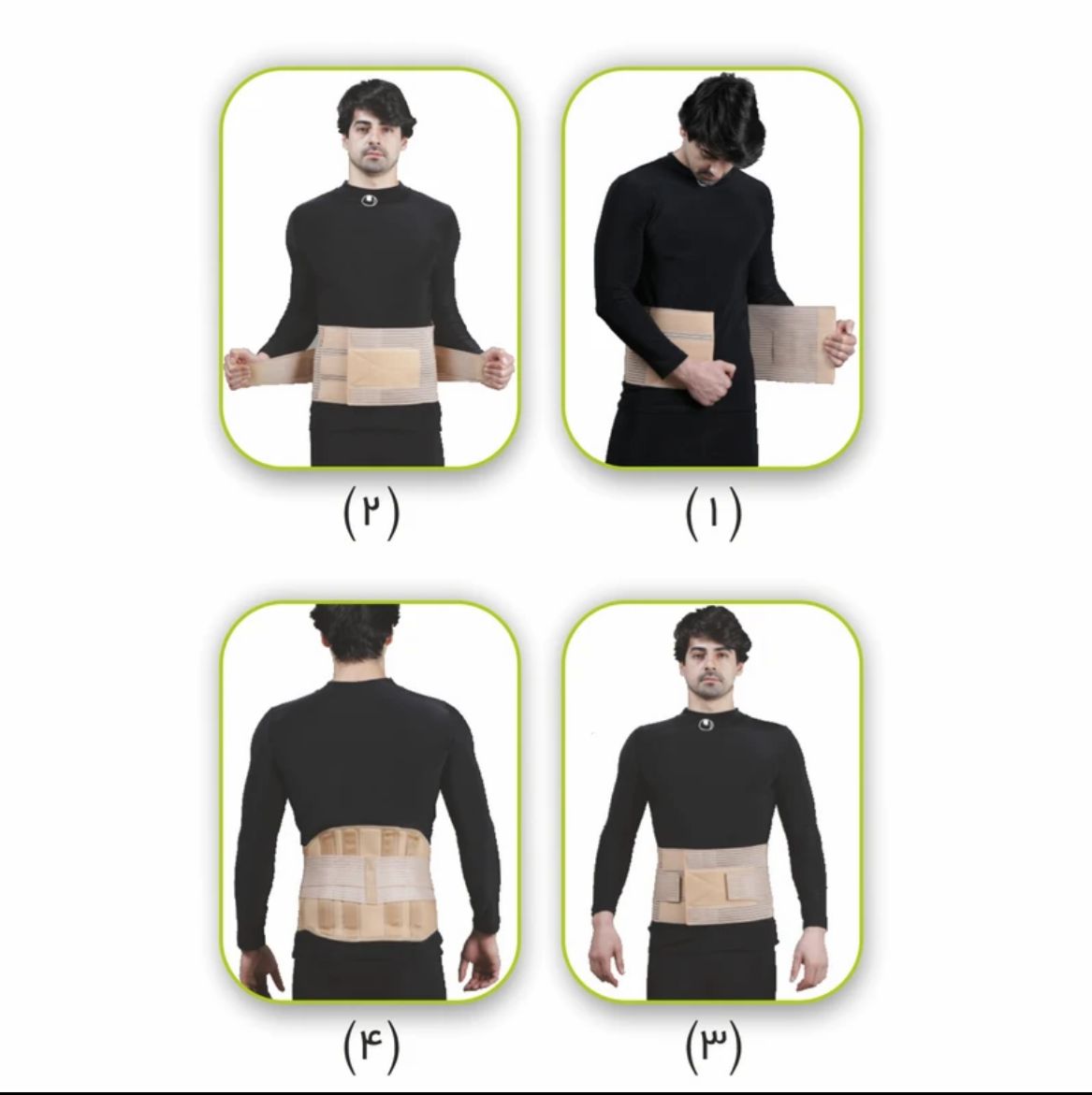 این محصول با چهار تسمه ارتجاعی همراه با کش دوبل ، تاثیر فوق العاده روی ستون فقرات کمری ، استخوان خاجی و عضلات مجاور گذاشته و وسیله ای مناسب برای حمایت و حفظ مهره های کمری در وضعیت مطلوب می باشد. موارد استفاده در انواع کمردرد به تشخیص پزشک معالج - بعضی از انواع شکستگی های پایدار مهره های کمری و پوکی شدید استخوا نو شکستگیهای ناشی از پوکی استخوان برای حمایت از مهره ها و تسکین درد و گرفتگی و کشیدگی عضلات و لیگامانها و افزایش و کاهش قوس طبیعی ستون فقرات کمری و سرخوردگی خفیف مهره ها و سایر موارد بنا به تجویز پزشک می باشد.