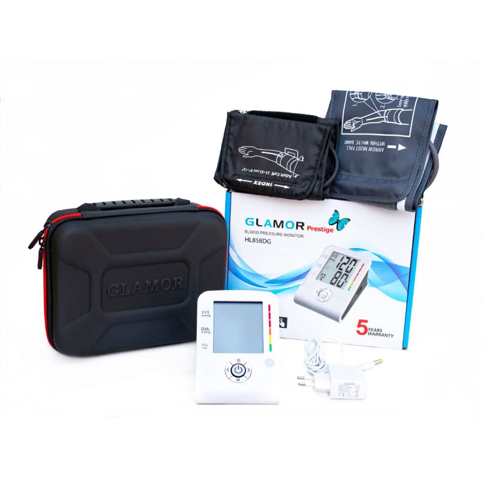 داشتن یک فشارسنج با امکانات مناسب برای استفاده خانگی بسیار می تواند برای افرادی که از بیماری فشارخون بالا رنج می برند و به اندازه گیری فشار خون نیاز دارند. میتواند بسیار موثر باشد. فشارسنج بازویی ابزاری که میتواند به خوبی این خواسته را ایفا کند حتی برای افراد مبتدی که بلد نیستند اندازه گیری نمایند. فشارسنج گلامور یک صفحه نمایش است که میتوان از طریق آن میزان ضربان قلب، فشار خون را نمایش می دهد. این دستگاه ۶۰ نتیجه اندازه گیری شده را در خود ذخیره کرده، قابلیت خاموشی خوکار، هشدار خطای محاسباتی، منبع تغذیه فشارسنج دیجیتال بازویی گلامور HL858DG باتری و استفاده برق شهری امکان پذیر است. این محصول قابلیت استفاده در منازل و مطب پزشکان و کلینک ها کاربرد دارد. این فشارسنج دارای دو کاف میباشد.