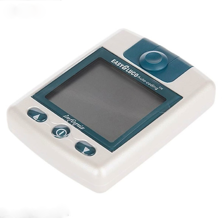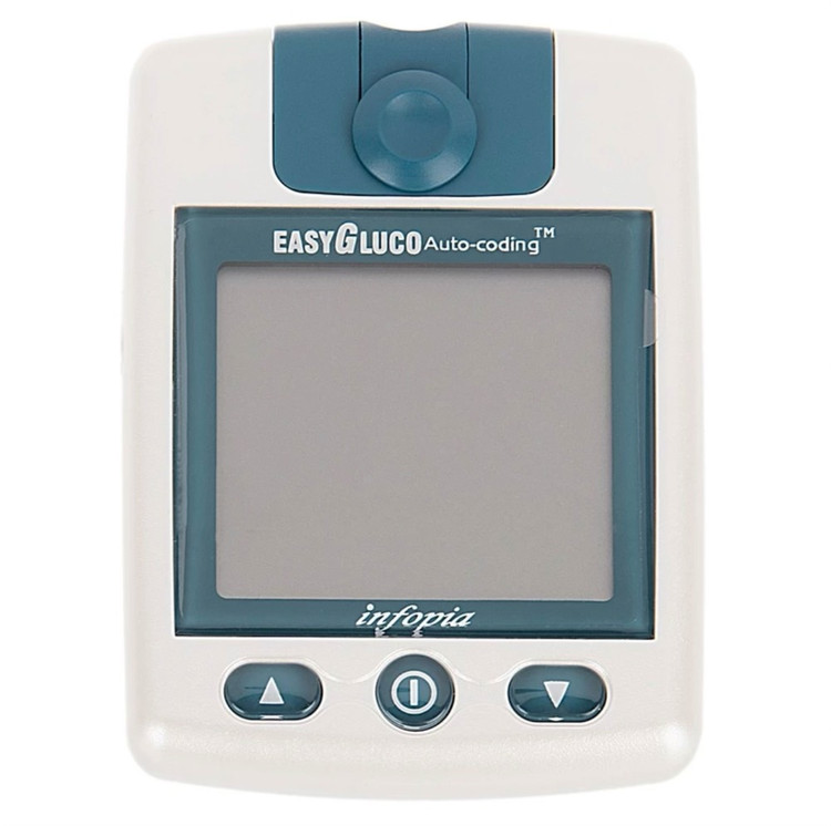 دستگاه تست قند خون «اینفوپیا» (Infopia) مدل «EasyGluco» دارای 365 حافظه، قابلیت تعیین شناسهی شخصی و حالت انجام تست و میانگینگیری از نتایج بوده و برای اندازهگیری قند خون تنها به 1.5 میکرو لیتر خون نیاز دارد. دستگاه دارای چهار حالت انجام تست است که خود شخص آنها را مشخص میکند. این حالتها شامل قبل از خوردن غذا، بعد از خوردن غذا، بعد از استفاده از دارو و بعد از ورزش میشوند. همچنین شخص میتواند قبل از اندازهگیری شناسه خود را وارد کند تا اطلاعات با شناسه خود او داخل حافظهی دستگاه ذخیره شود. حافظهی دستگاه قابلیت ذخیرهی نتایج تا 365 مورد را دارد. با فشردن و رها کردن کلید بالا و پایین دستگاه میتوان حالت انجام تست، تنظیمات زمان و تاریخ و واحد نمایش میزان قند خون و دما را تغییر داد. واحد نمایش قند خون را میتوان بین دو حالت میلیگرم بر دسی لیتر (mg/dl) و میلی مول بر لیتر (mmol/l) تغییر داد. قابلیت جالب این دستگاه محاسبه میانگین نتایج است که میتوان تعداد روزهای اندازهگیری 3 میانگین را از 7 تا 90 روز تعیین کرد. انرژی دستگاه از دو عدد باتری سکهای CR3032 تأمین میشود. این دستگاه دارای قابلیت Auto Coding است و کد نوار تست قند خون را به شکل اتوماتیک از روی نوار تشخیص میدهد؛ بنابراین احتیاجی به واردکردن کد به شکل دستی نیست. مقدار خون موردنیاز برای اندازهگیری قند خون توسط دستگاه 1.5 میکرو لیتر است. پس از قرار دادن قطرهی خون روی محل مشخصشدهی نوار، 9 ثانیه طول میکشد تا قند خون روی صفحه به نمایش در آید. اقلام همراه دستگاه شامل 50 عدد نوار تست، قلم سوزن زن، 50 عدد سوزن، محلول کنترل، دو عدد باتری سکهای، CD آموزشی و دفترچه راهنمای فارسی میشود. همهی اینها داخل یک کیف نگهداری محکم ارائه میشوند. توضیحات کامل نحوهی استفاده از دستگاه داخل دفترچه راهنمای فارسی آمده است. دستگاه EasyGluco دارای یک نرمافزار کنترل دیابت است که میتواند نتیجهی کلیهی تستها را در خود ذخیره کند. برای این منظور باید اطلاعات دستگاه را توسط کابل مخصوص (باید جداگانه تهیه شود) به کامپیوتر شخصی فرستاد. به طور خلاصه تست قند خون Infopia EasyGluco دارای 356 حافظهی ذخیرهسازی، قابلیت تعیین شناسهی شخصی، نمایش نتیجه در 9 ثانیه، تعیین حالت انجام تست، خواندن اتوماتیک کد نوار، قابلیت میانگینگیری از نتایج، اندازهگیری دمای محیط و اقلام همراه کامل بوده و برای اندازهگیری قند خون تنها به 1.5 میکرو لیتر خون نیاز دارد.