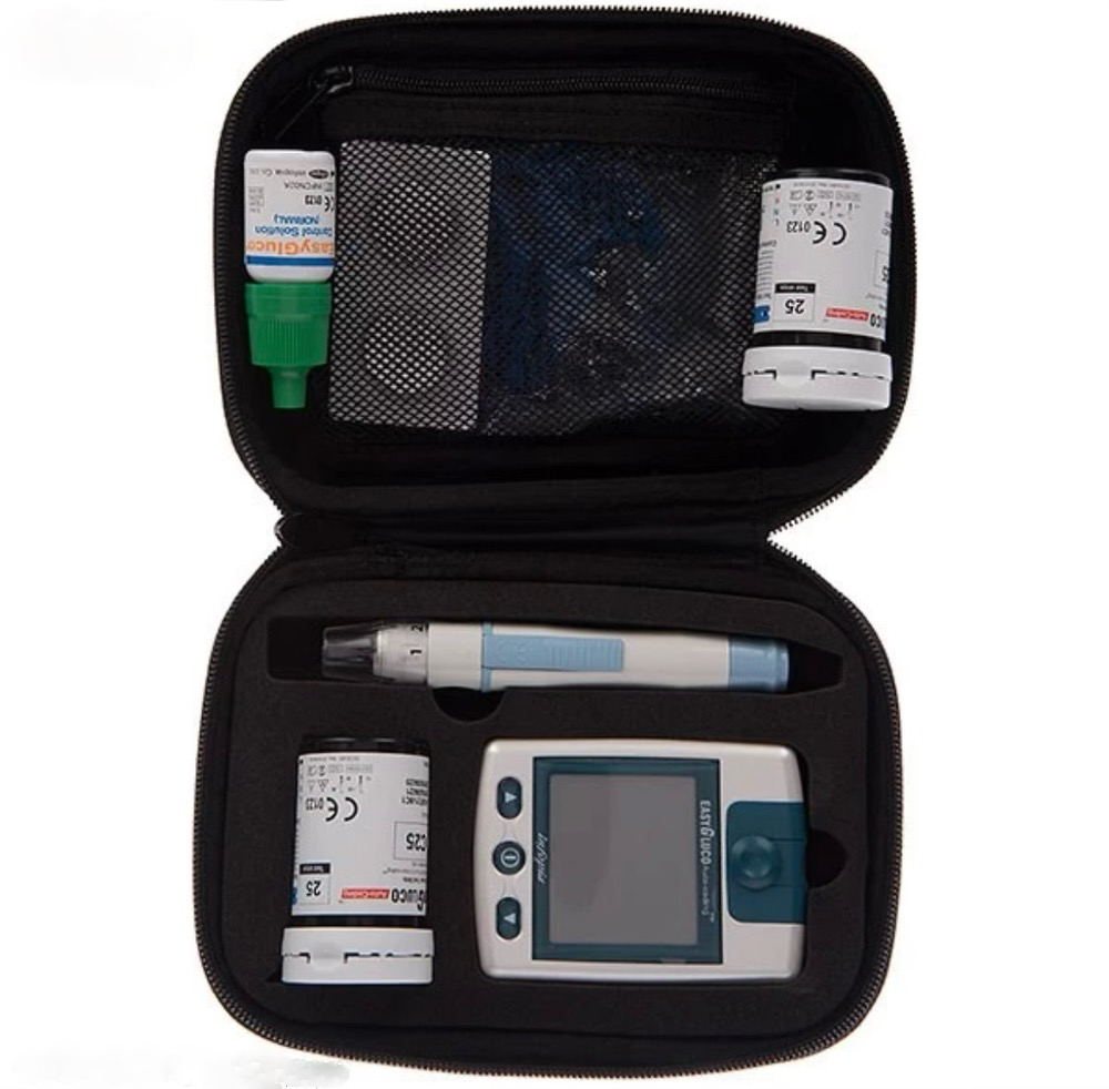 دستگاه تست قند خون «اینفوپیا» (Infopia) مدل «EasyGluco» دارای 365 حافظه، قابلیت تعیین شناسهی شخصی و حالت انجام تست و میانگینگیری از نتایج بوده و برای اندازهگیری قند خون تنها به 1.5 میکرو لیتر خون نیاز دارد. دستگاه دارای چهار حالت انجام تست است که خود شخص آنها را مشخص میکند. این حالتها شامل قبل از خوردن غذا، بعد از خوردن غذا، بعد از استفاده از دارو و بعد از ورزش میشوند. همچنین شخص میتواند قبل از اندازهگیری شناسه خود را وارد کند تا اطلاعات با شناسه خود او داخل حافظهی دستگاه ذخیره شود. حافظهی دستگاه قابلیت ذخیرهی نتایج تا 365 مورد را دارد. با فشردن و رها کردن کلید بالا و پایین دستگاه میتوان حالت انجام تست، تنظیمات زمان و تاریخ و واحد نمایش میزان قند خون و دما را تغییر داد. واحد نمایش قند خون را میتوان بین دو حالت میلیگرم بر دسی لیتر (mg/dl) و میلی مول بر لیتر (mmol/l) تغییر داد. قابلیت جالب این دستگاه محاسبه میانگین نتایج است که میتوان تعداد روزهای اندازهگیری 3 میانگین را از 7 تا 90 روز تعیین کرد. انرژی دستگاه از دو عدد باتری سکهای CR3032 تأمین میشود. این دستگاه دارای قابلیت Auto Coding است و کد نوار تست قند خون را به شکل اتوماتیک از روی نوار تشخیص میدهد؛ بنابراین احتیاجی به واردکردن کد به شکل دستی نیست. مقدار خون موردنیاز برای اندازهگیری قند خون توسط دستگاه 1.5 میکرو لیتر است. پس از قرار دادن قطرهی خون روی محل مشخصشدهی نوار، 9 ثانیه طول میکشد تا قند خون روی صفحه به نمایش در آید. اقلام همراه دستگاه شامل 50 عدد نوار تست، قلم سوزن زن، 50 عدد سوزن، محلول کنترل، دو عدد باتری سکهای، CD آموزشی و دفترچه راهنمای فارسی میشود. همهی اینها داخل یک کیف نگهداری محکم ارائه میشوند. توضیحات کامل نحوهی استفاده از دستگاه داخل دفترچه راهنمای فارسی آمده است. دستگاه EasyGluco دارای یک نرمافزار کنترل دیابت است که میتواند نتیجهی کلیهی تستها را در خود ذخیره کند. برای این منظور باید اطلاعات دستگاه را توسط کابل مخصوص (باید جداگانه تهیه شود) به کامپیوتر شخصی فرستاد. به طور خلاصه تست قند خون Infopia EasyGluco دارای 356 حافظهی ذخیرهسازی، قابلیت تعیین شناسهی شخصی، نمایش نتیجه در 9 ثانیه، تعیین حالت انجام تست، خواندن اتوماتیک کد نوار، قابلیت میانگینگیری از نتایج، اندازهگیری دمای محیط و اقلام همراه کامل بوده و برای اندازهگیری قند خون تنها به 1.5 میکرو لیتر خون نیاز دارد.